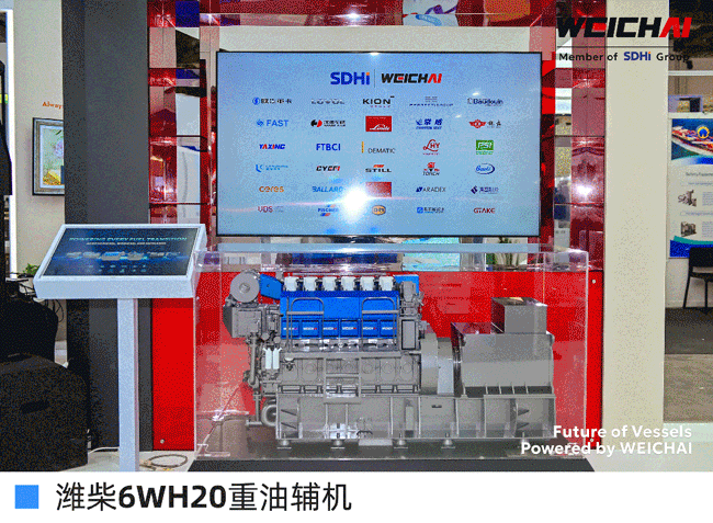 现场展区,三款传统能源动力产品以高效可靠、绿色节能与良好市场口碑,共同构成潍柴低碳能源转型的动力支撑。WH20重油辅机高可靠性满足主流航运需求;16M23展现高端艇用动力极致性能;12M26.3凭优异性能成为东南亚高销量机型。