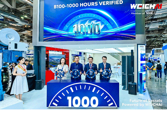 会上,搭载潍柴核心动力的B100生物燃油船舶1000小时海试完成仪式顺利举行,南洋理工大学、中国船级社新加坡分社、Pinnacle Marine等合作伙伴共同见证这一时刻。从2024年项目签约到2025年实船下水,这是新加坡首个B100实船1000小时海试项目,此次全周期验证为业界探索低碳燃料应用提供了示范及关键数据支撑。